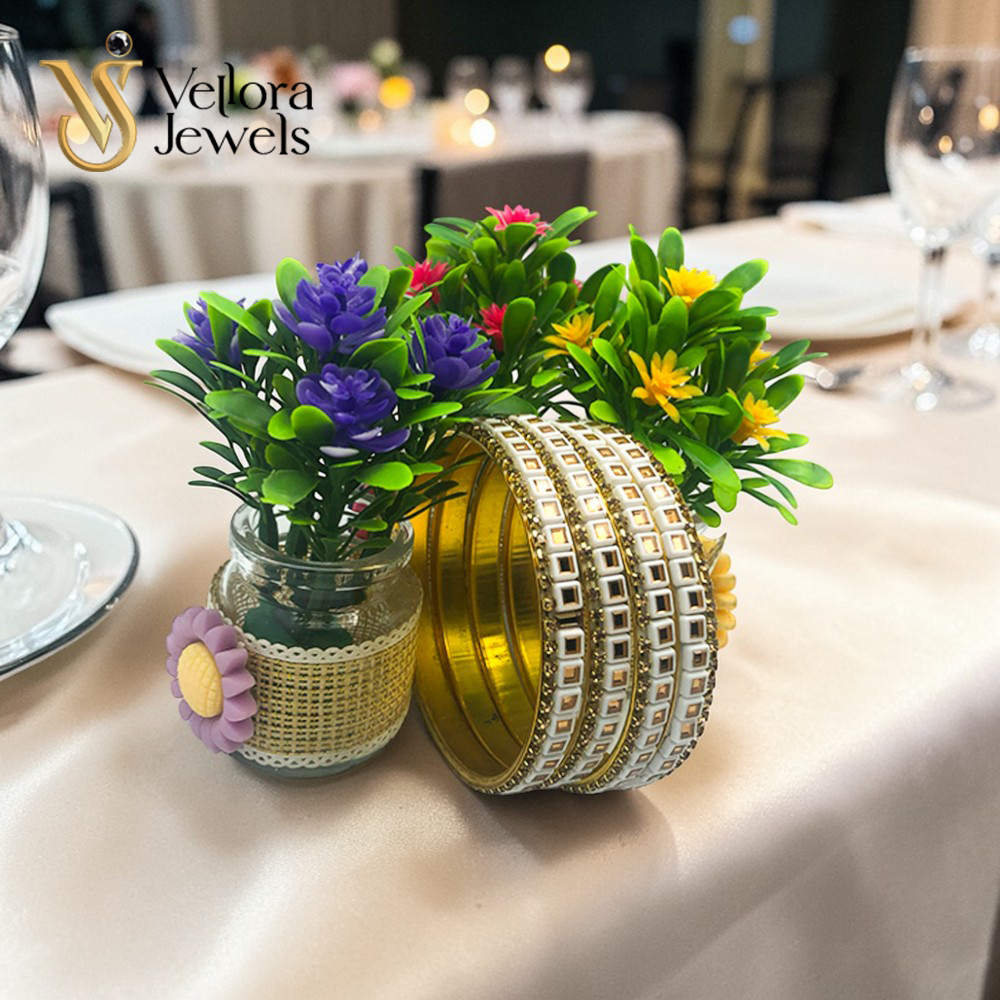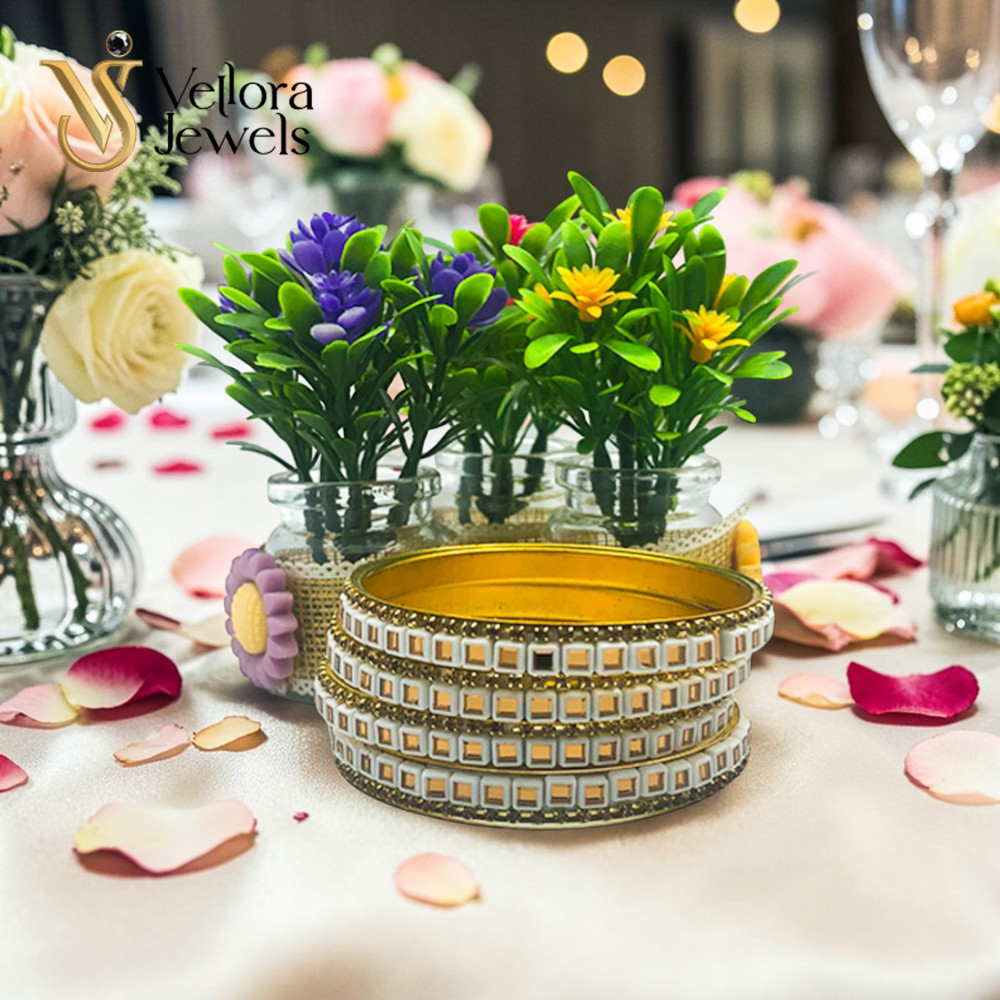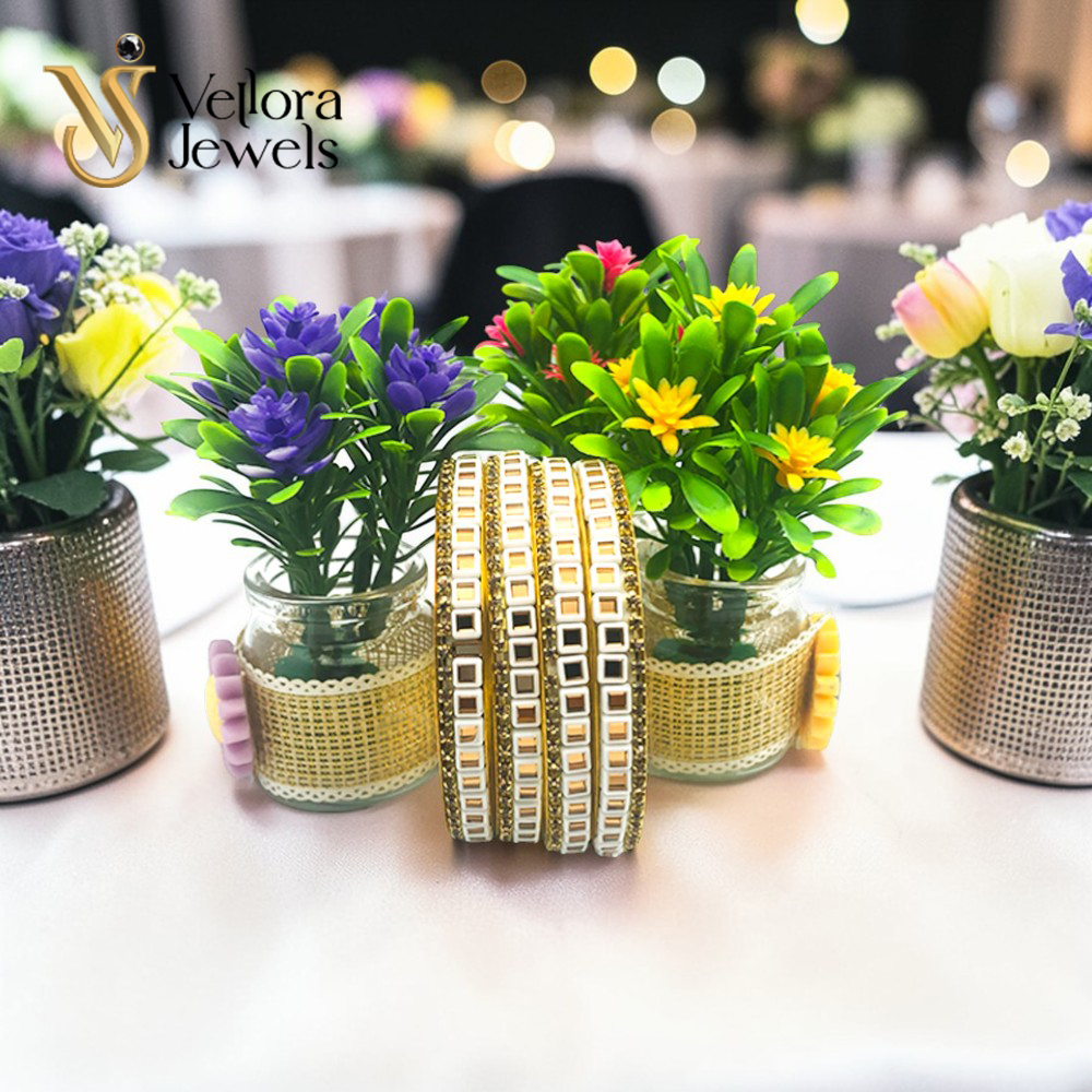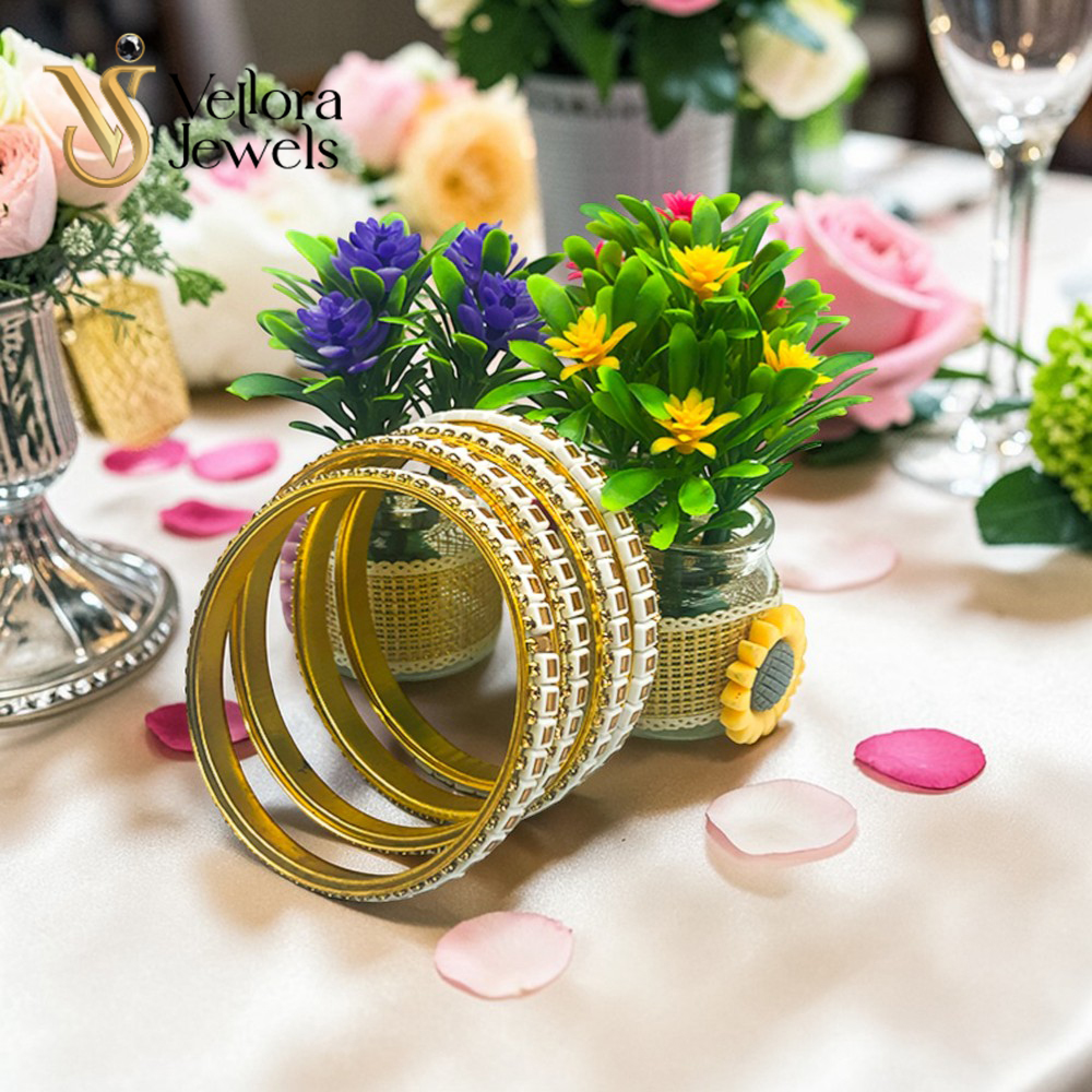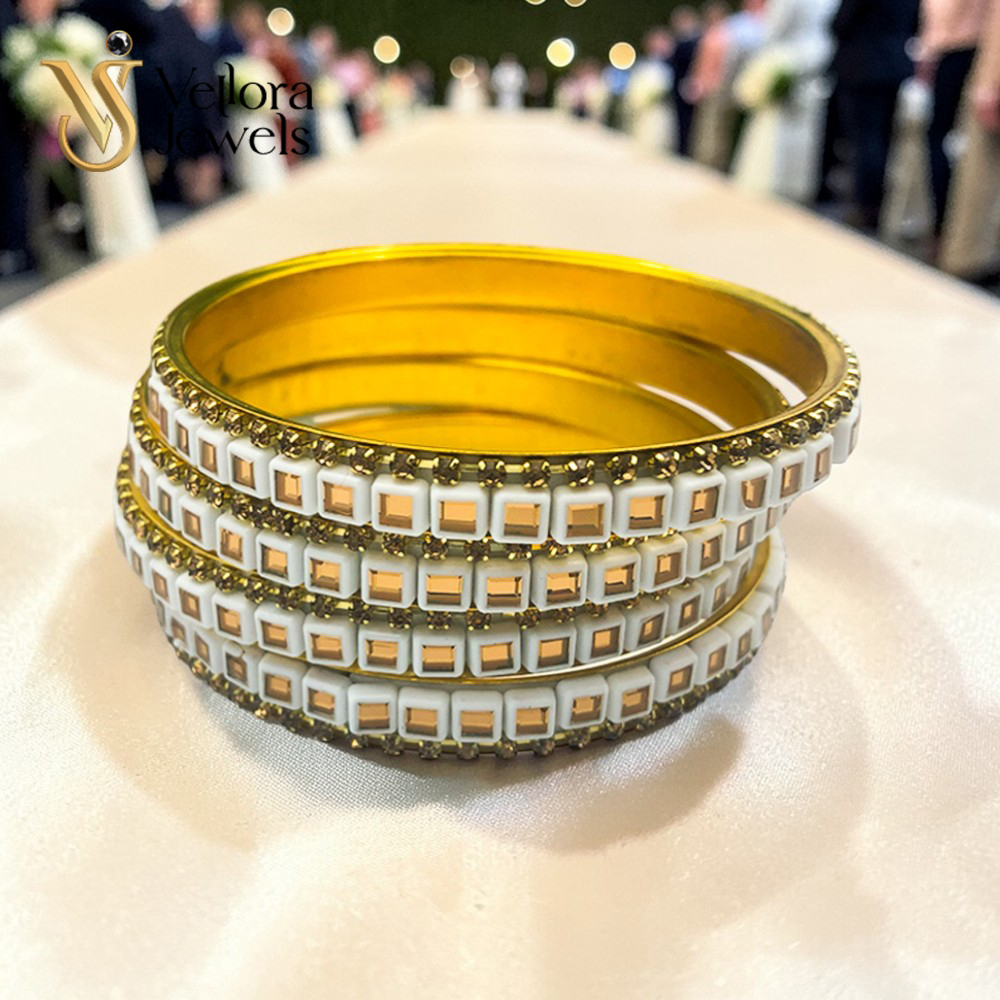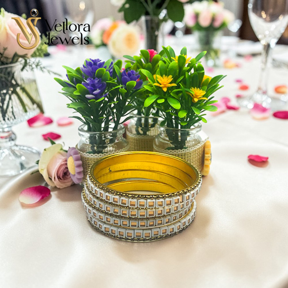White Kundan Bangles Set for Women Girls – Gold Plated Traditional Bridal Bangles